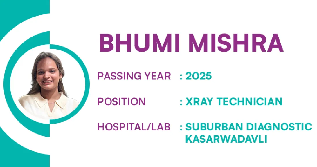Radiology TechnicianI had never been exposed to know about the different courses by my school / family. SCOPE ripened me in all aspects. The kind of counselling and motivation towards Paramedical Healthcare course which they gave, I could select Diploma in Radiology & Imaging Technology course. After a year of course, I was trained at Suburban Diagnostics Lab.